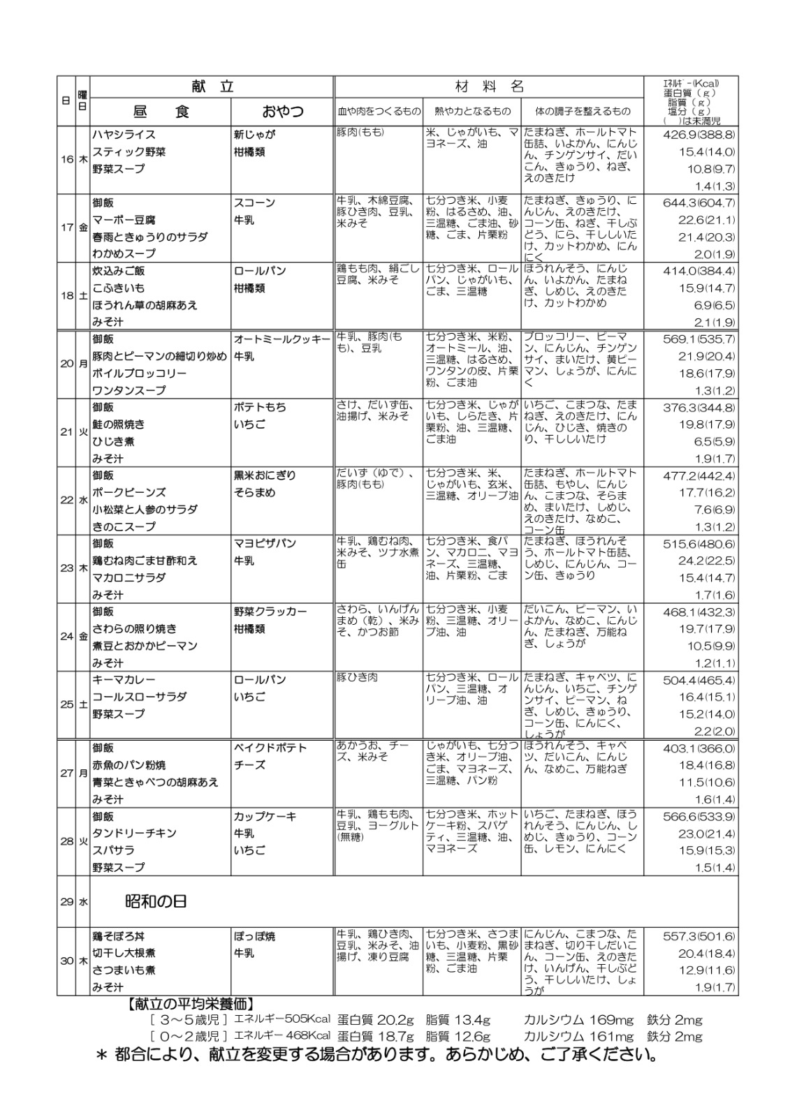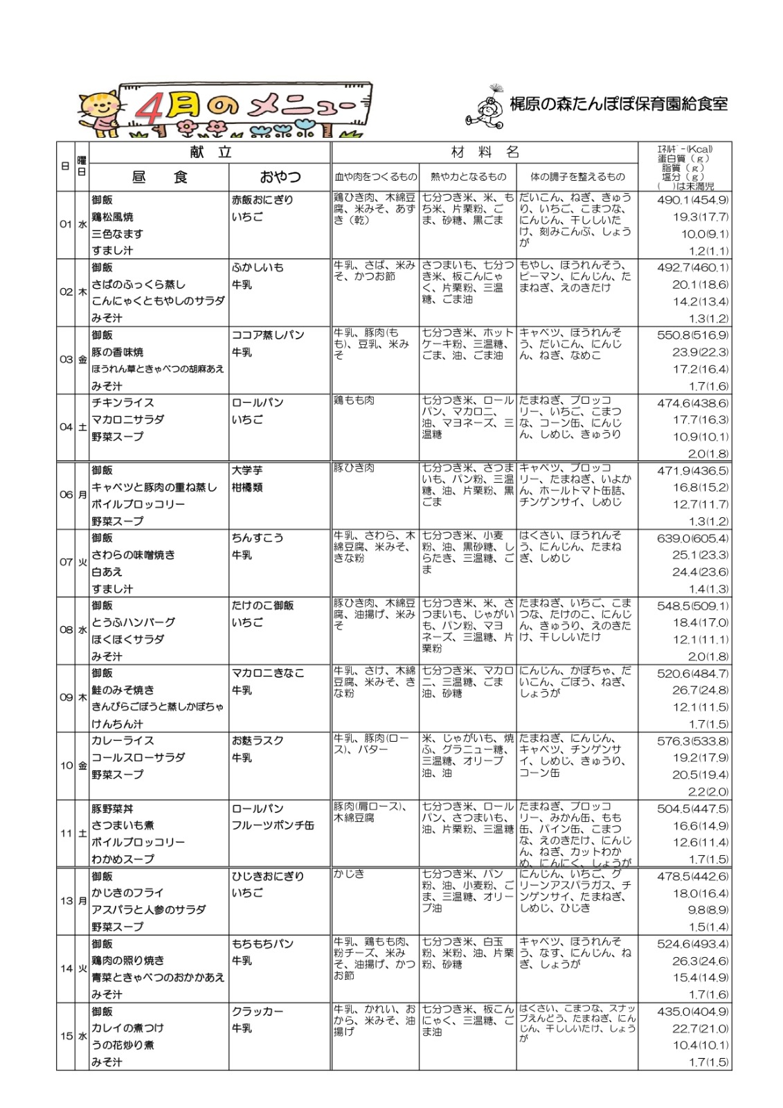 給食だより:4月号・4月の献立