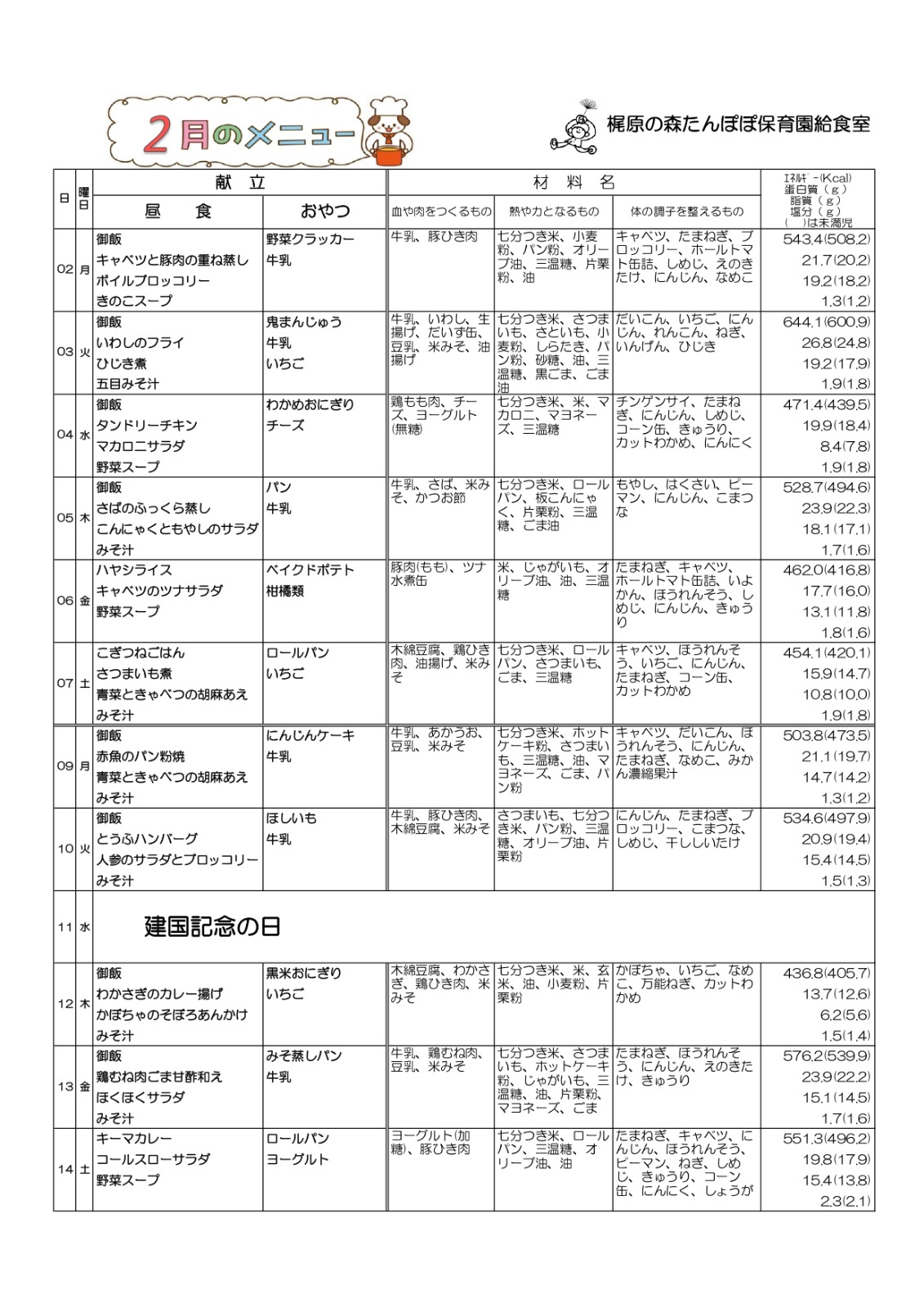 給食だより:2月号・2月の献立