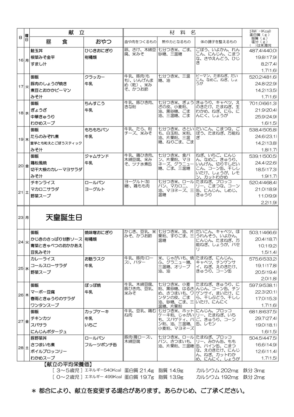 2月の給食献立