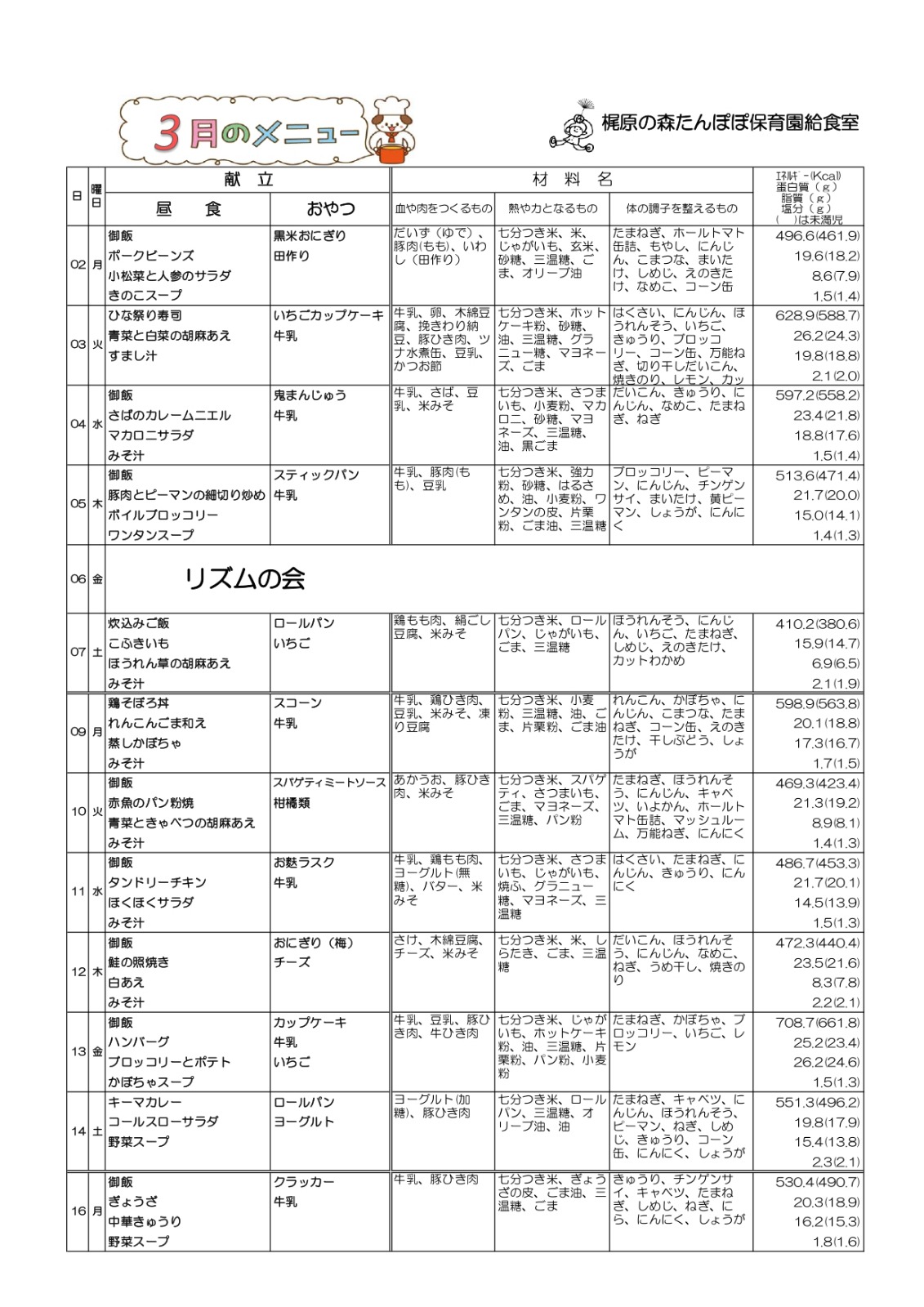 給食だより:3月号・3月の献立